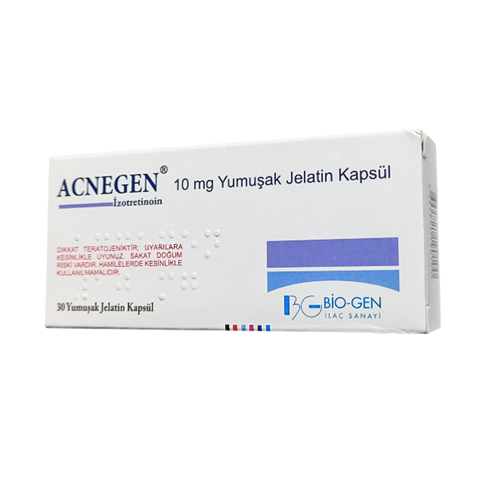 В качестве активного ингредиента Acnegen содержит изотретиноин, родственный витамину А и относящийся к группе ретиноидов. Каждая упаковка Акнеген содержит 30 мягких желатиновых капсул в блистерах по 10 капсул. Капсулы овальные, фиолетового цвета.