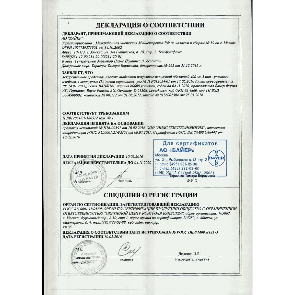 Применение. Таблетки Авелокс следует принимать, не разжевывая, запивая небольшим количеством воды, независимо от приема пищи.