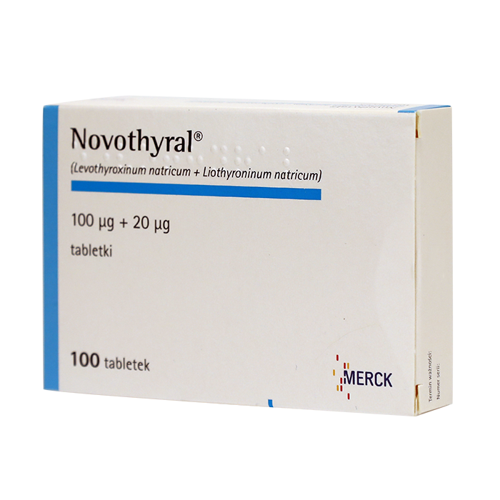 1 таблетка Новотирал содержит левотироксина натрия 100 или 75 мкг и лиотиронина натрия 20 или 15 мкг соответственно.