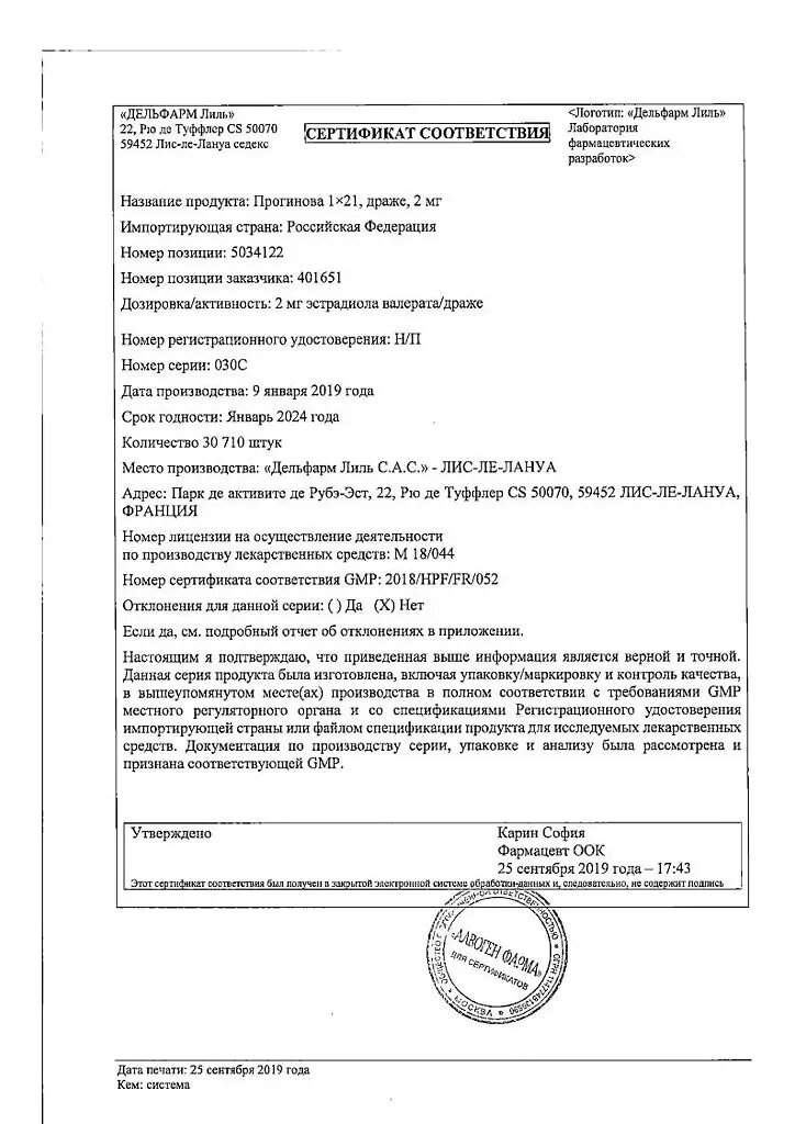 Особые указания. Прогинова может увеличивать риск развития определенных заболеваний, включая тромбоэмболические заболевания, рак молочной железы и эстрогензависимые опухоли. Поэтому препарат следует принимать только по назначению врача и под его наблюдением.