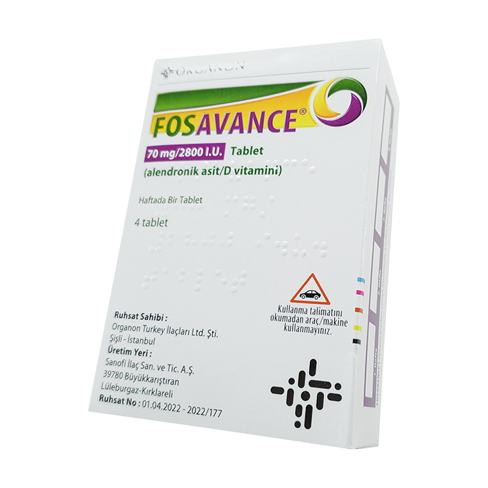 Фосаванс - бисфосфонат, ингибирующий резорбцию костной ткани. Активное вещество алендроновая кислота локализуется в зоне активной резорбции, где и производит свое действие, не оказывая существенного влияния на образование новой ткани. Подавление резорбции снижает образование новой, но в меньшей степени, что влечет прогрессирующее увеличение костной массы. Алендронат встраивается в матрикс вновь формирующейся костной ткани, в терапевтических дозах не вызывает остеомаляцию. Витамин D3 (колекальциферол) продуцируется в коже, при отсутствии солнечного света его выработка снижается, поэтому необходимое количество должно поступать с пищей. Витамин усиливает абсорбцию кальция и фосфатов в кишечнике, регулирует уровень кальция в крови, необходим для формирования костной ткани. Его недостаточность вызывает потерю костной массы и риск переломов при остеопорозе.