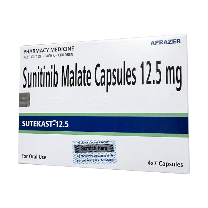 Применение. Капсулы Sutekast принимаются в независимости от приема пищи. Рекомендуемая доза препарата Sutent составляет 50 мг в день в течение 4 недель с последующим перерывом в 2 недели (режим 4/2). Полный цикл терапии составляет, таким образом, 6 недель.