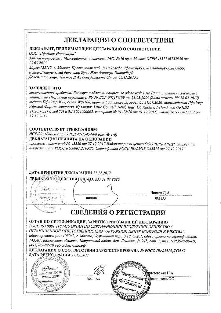 Инструкция по применению Рапамун Сиролимус раствор для приема внутрь 1мг/мл 60мл