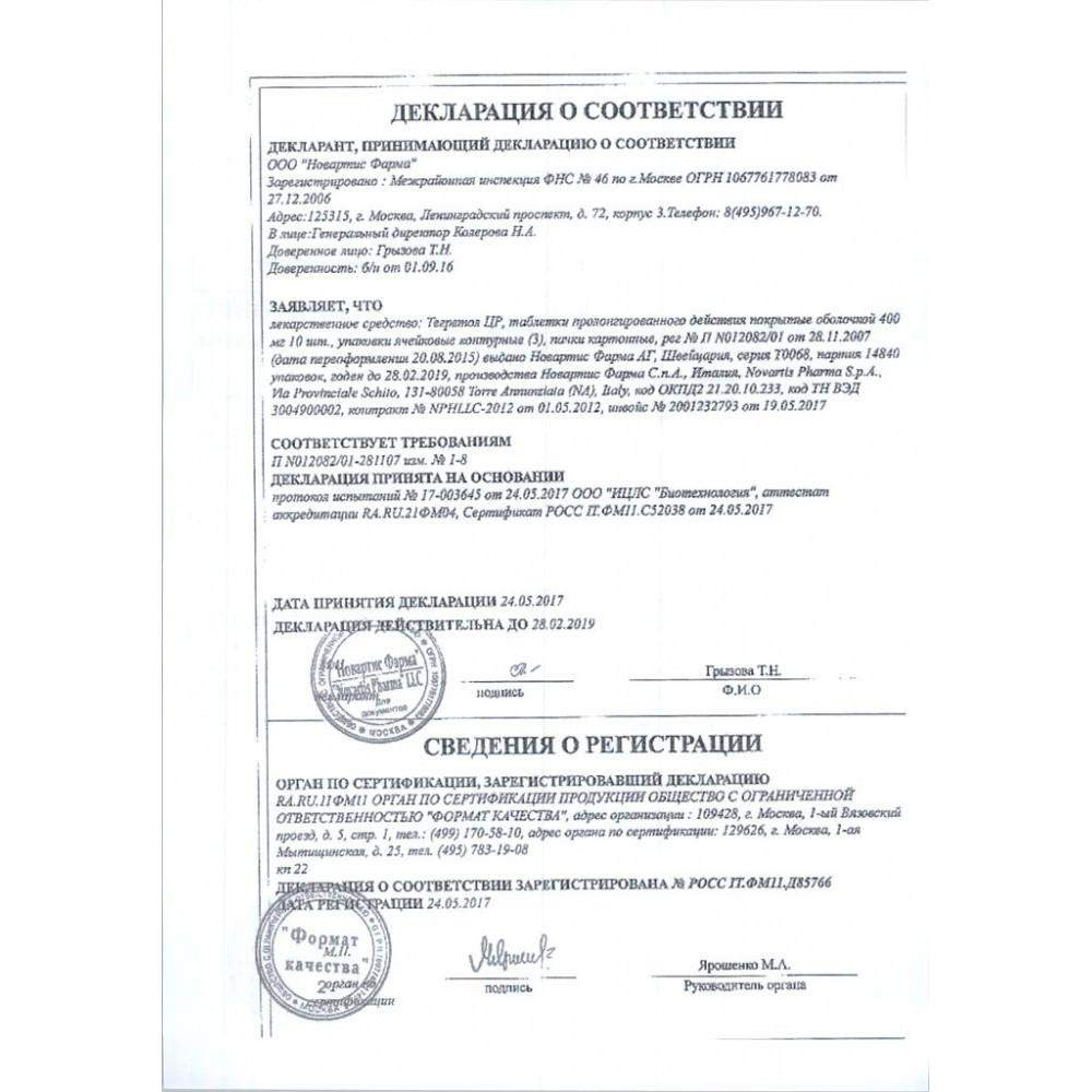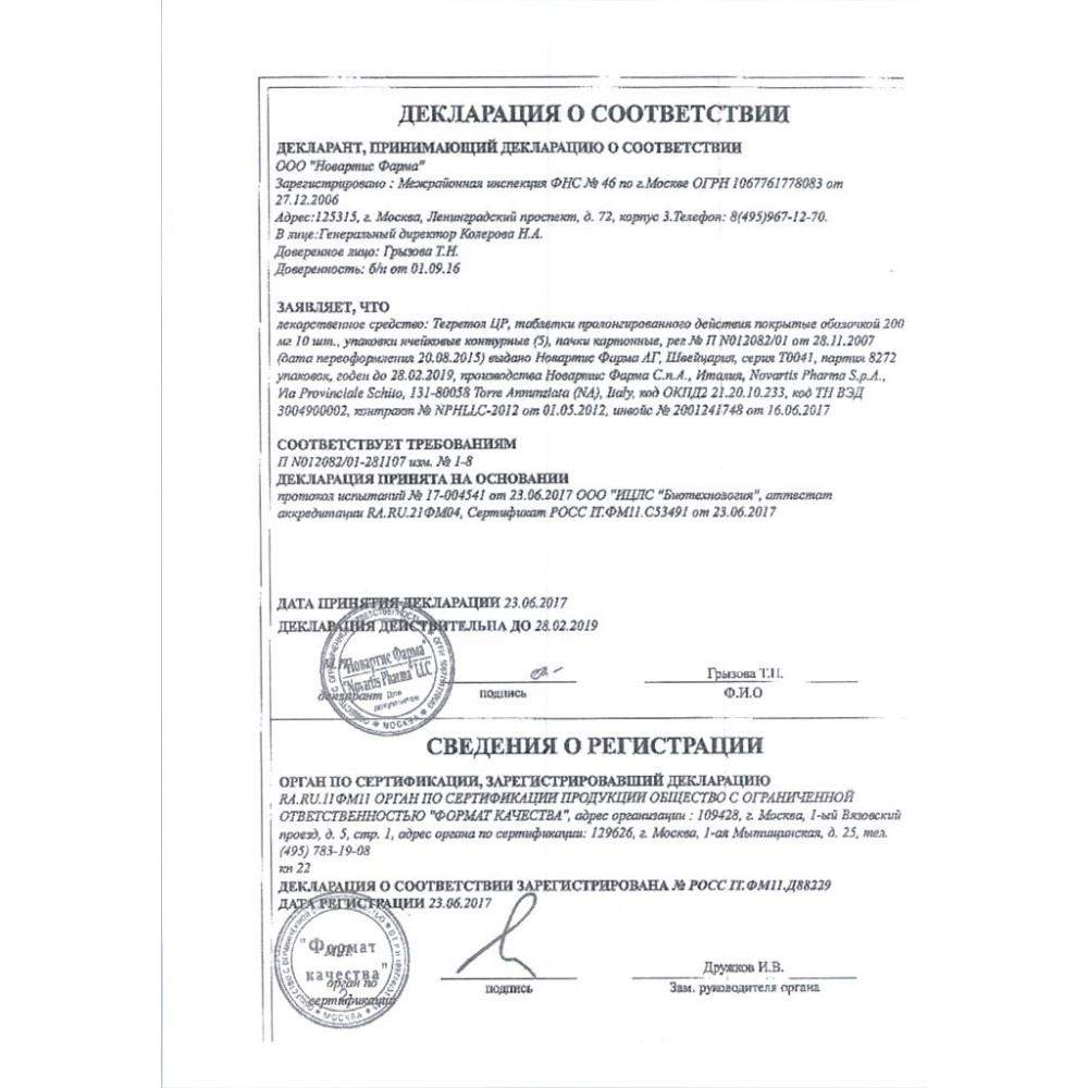 Инструкция по применению Тегретол ЦР (CR) 200мг таблетки №50