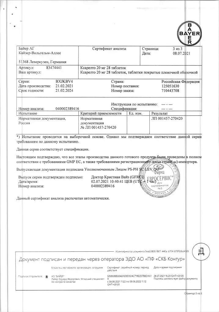 Фармакокинетического взаимодействия между варфарином и препаратом Ксарелто® не обнаружено.